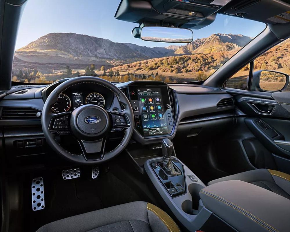 The infotainment system runs on a 7-inch touchscreen with four speakers in the Convenience, but on all other trims, it runs on an 11.6-inch touchscreen with six speakers. Apple CarPlay and Android Auto are standard, as is SiriusXM satellite radio and Bluetooth mobile phone connectivity with voice activation. The premium Crosstrek trims have a premium Harman Kardon audio system with ten speakers.